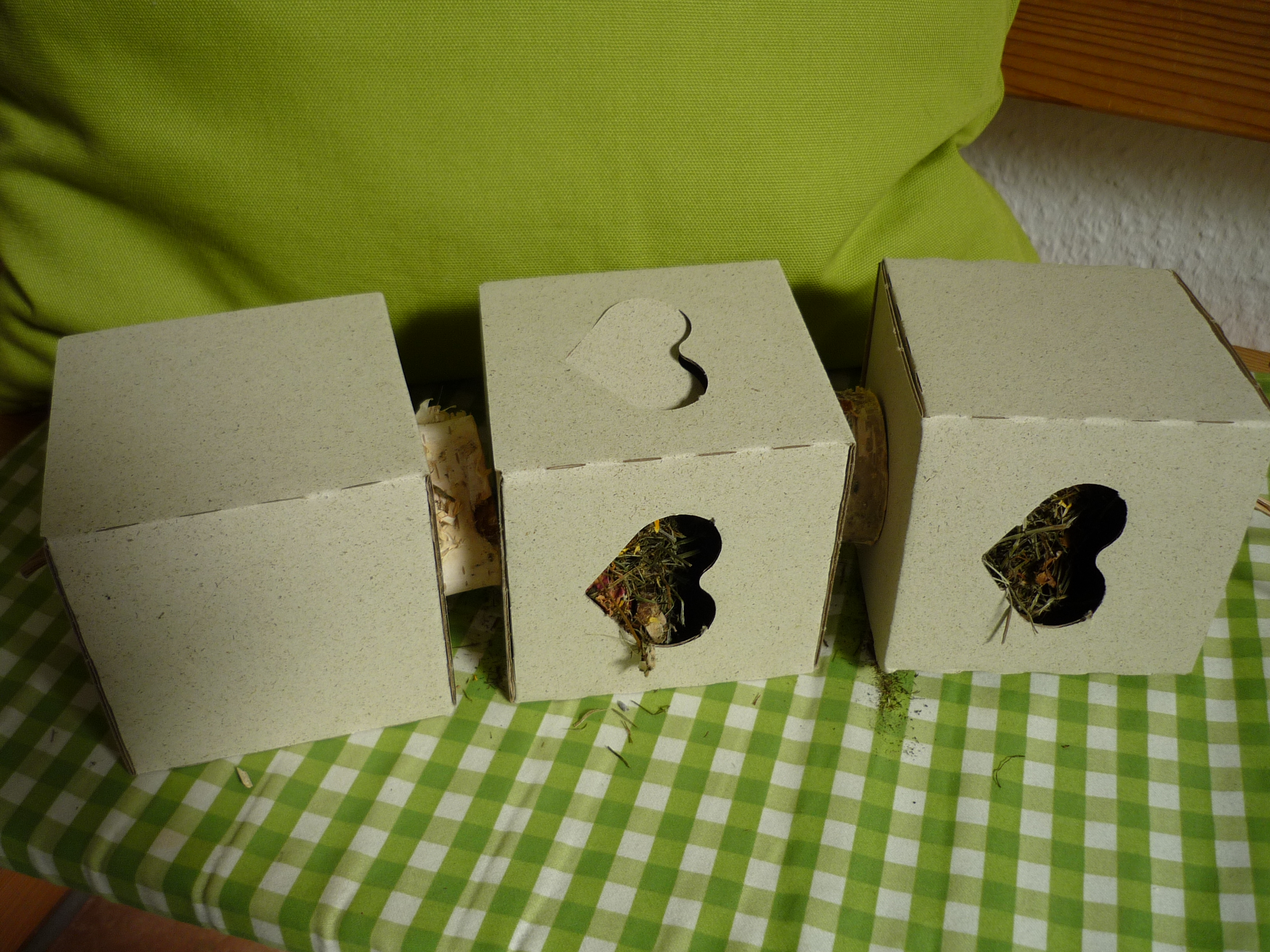 - 3 kleine Würfel zu 100 % aus Naturfaser, kann komplett verzehrt werden (Lignocellulose, 30 % Gras getrocknet)