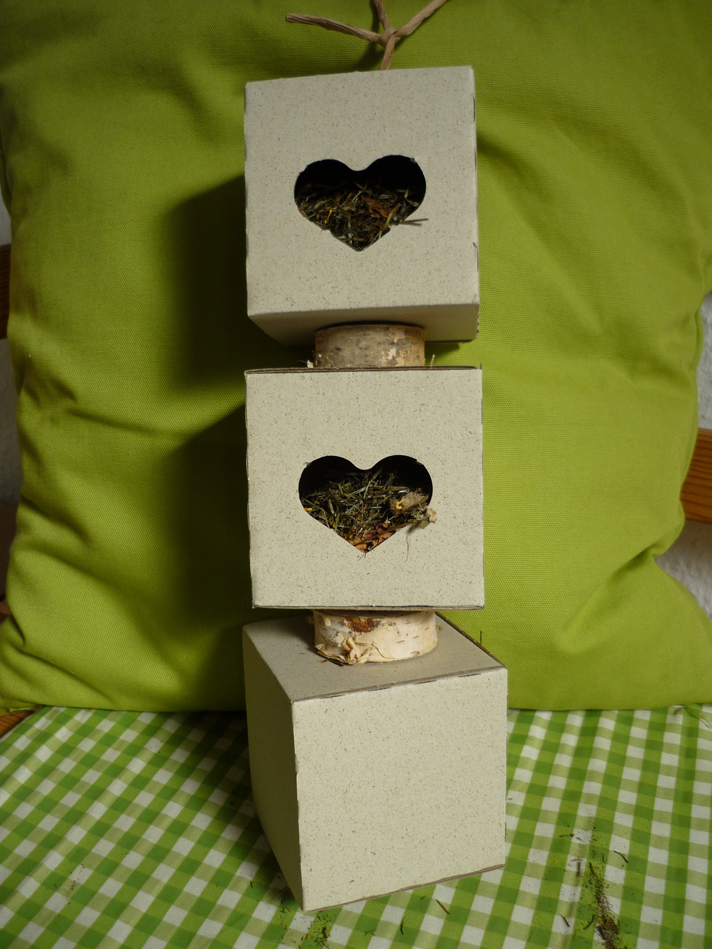 - gefüllt mit aromatischem Bergwiesenheu 50 % und einer Blüten- Kräutermischung