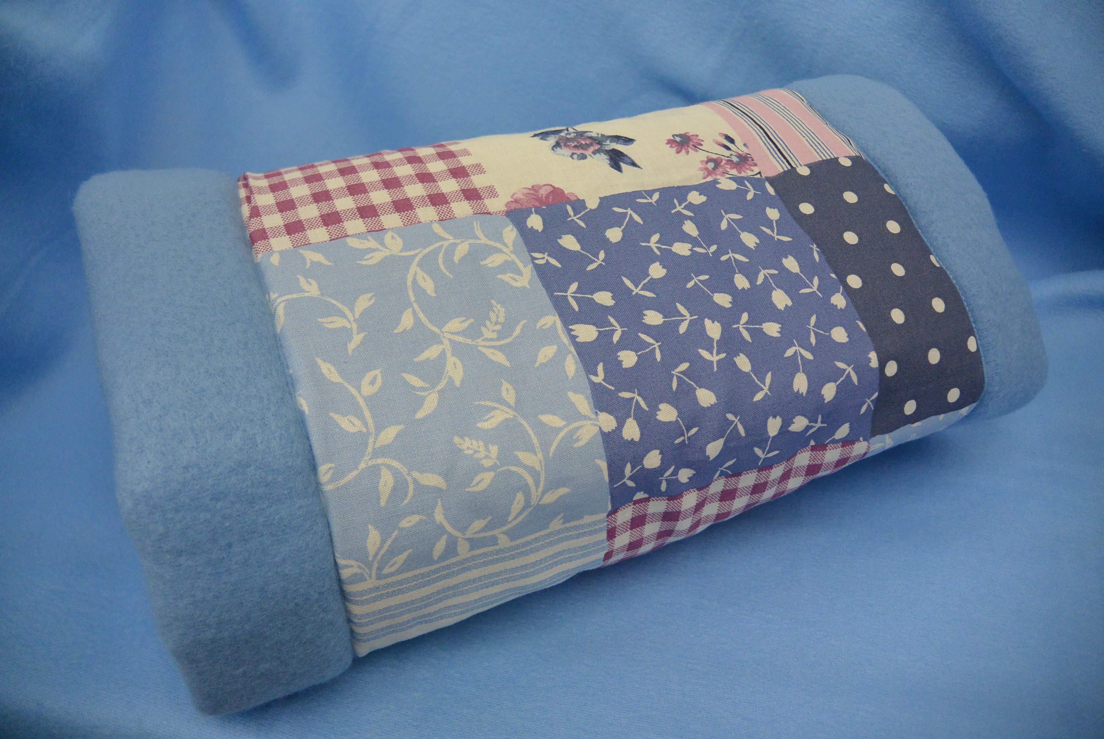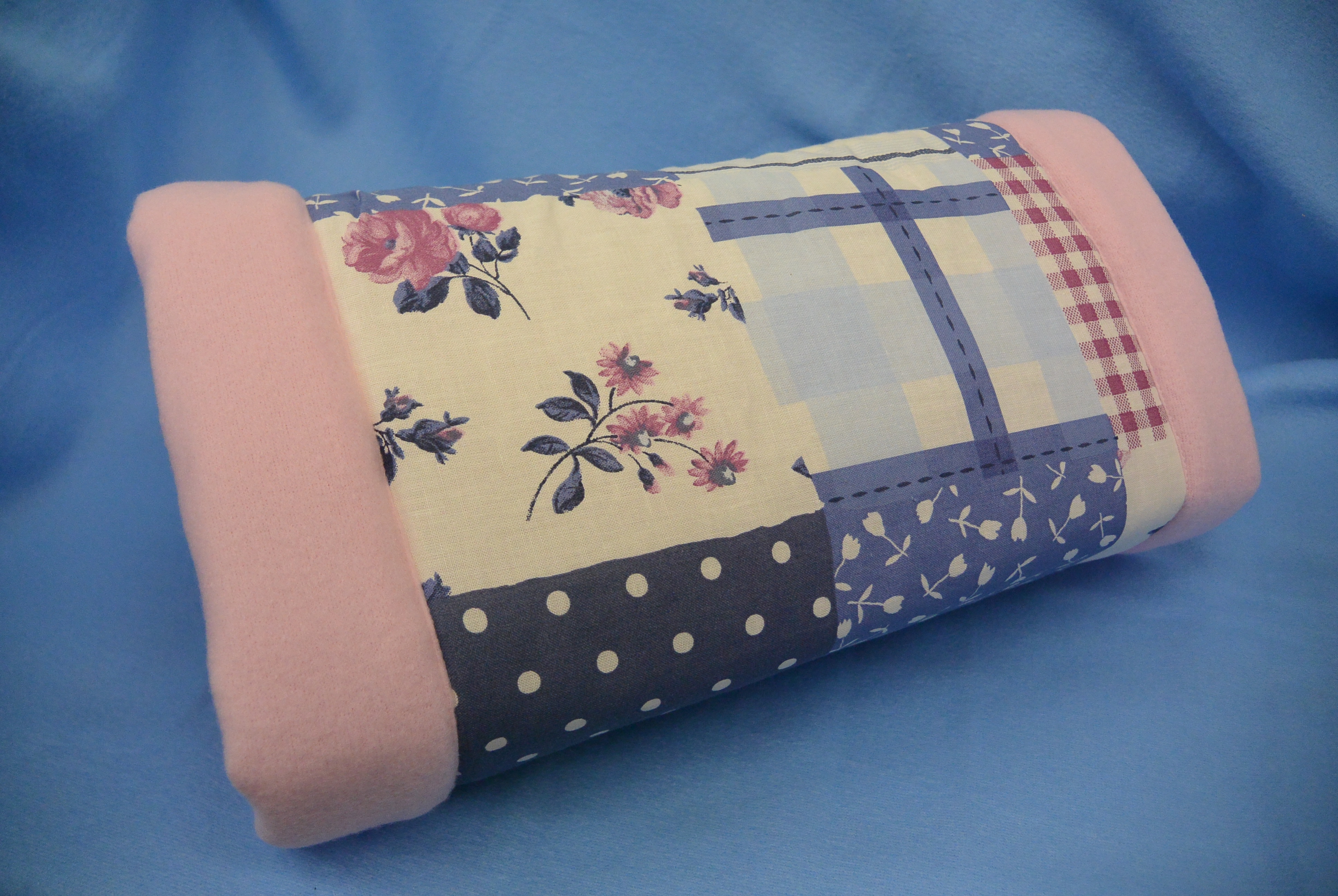 Außen: Baumwollstoff im Patchworkmuster rosa - blau